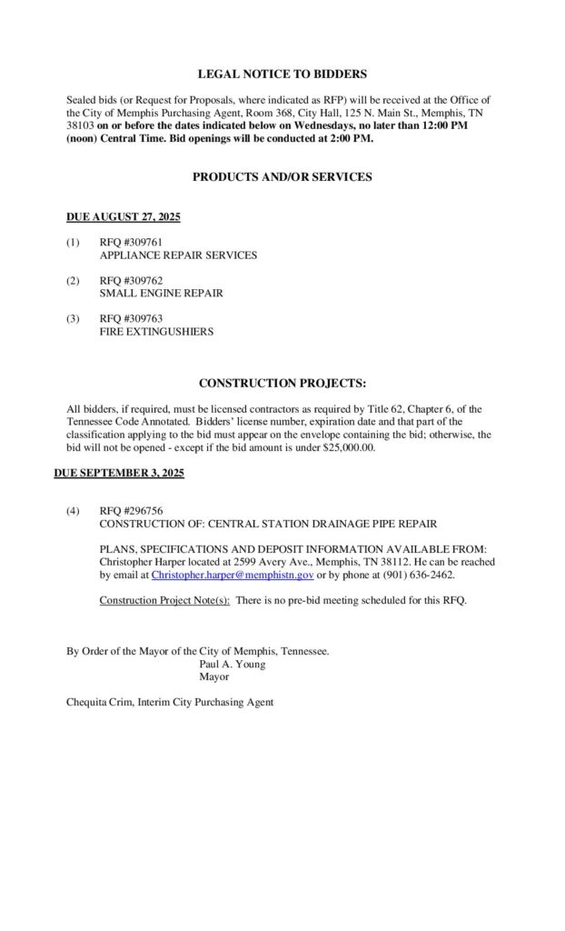 Legal Notice to Bidders for Sept 2nd & 3rd 2025
