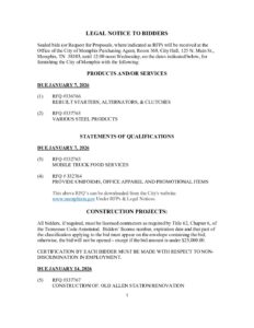 Legal Notice To Bidders – Advertisement for December 16th & 17th